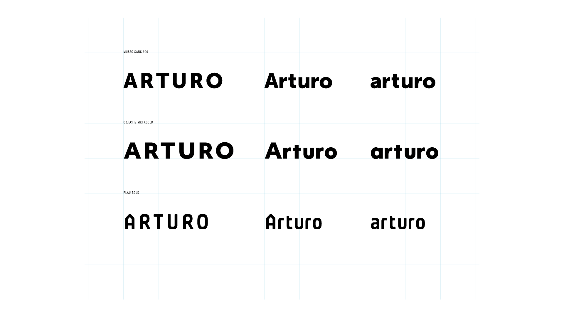 The orignal Arturo brand relied on a singular typeface to convey a strong voice incorporated into the core of the visual identity. The font chosen was Gotham a geometric sans-serif typeface family designed by American type designer Tobias Frere-Jones with Jesse Ragan and released through the Hoefler & Frere-Jones foundry from 2000. Gotham's letterforms were inspired by examples of architectural signs of the mid-twentieth century.